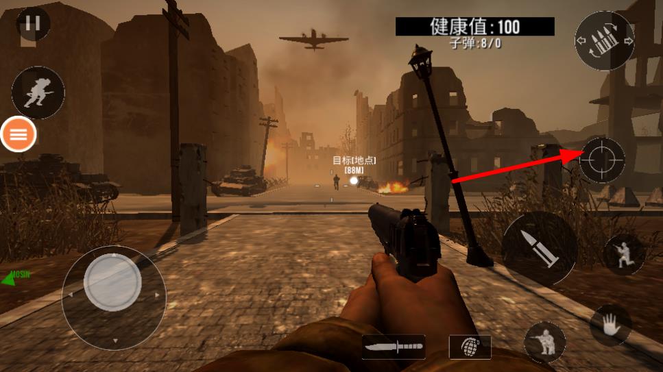 4、瞄准箭头指向的飞机,进行射击,可攻击空中目标,完成特定任务目标,获取游戏奖励。