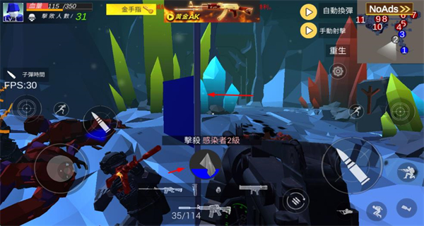 3、击败敌方获取增益道具,强化自身战斗能力,提升对战效率。
