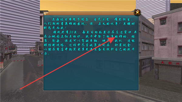 1、进入血战上海滩界面,点击开始按钮开启游戏,了解背景为上海被日寇侵略的乱世。