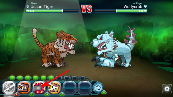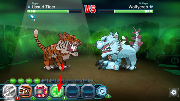 1、在战斗界面,点击下方的绿色技能按键,可使用恢复类技能,提升己方Ussuri Tiger生存。