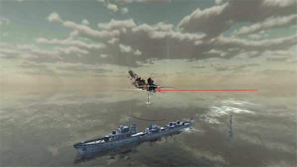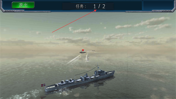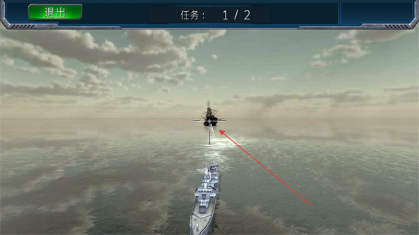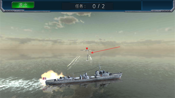 1、操控战舰移动,瞄准敌方目标如战机发起攻击,推进任务进度。