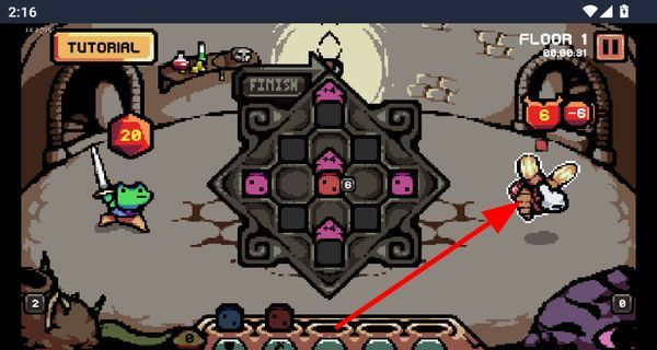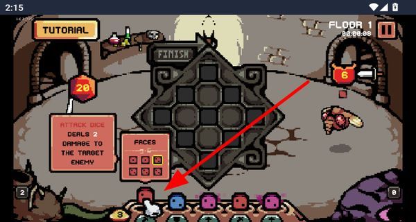 1、点击下方骰子可将其放入中间棋盘,通过骰子布局来发动攻击,与地牢中的敌人展开战斗。