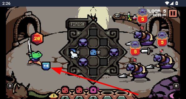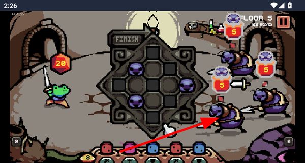 4、布局好骰子后攻击敌人,消灭敌人可获取资源或经验,继续在地牢中深入探索。