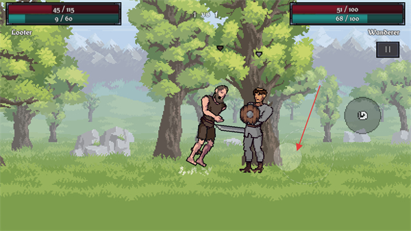 4、通过左侧的轮盘操控角色手部武器的挥砍轨迹,进行攻击敌人防守伤害。