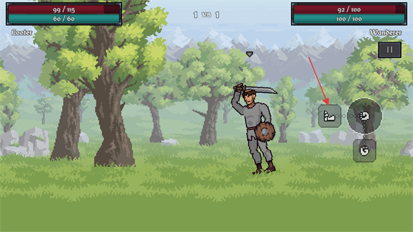 2、战斗中,点击右侧的拳头按钮进行手部的攻击控制。