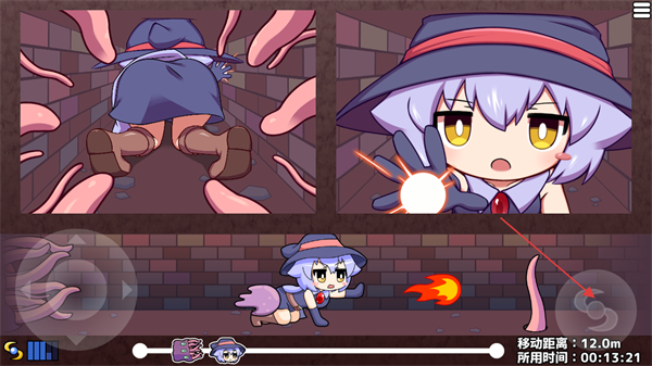 4、当被怪物阻挡时,点击右侧的魔法按钮释放技能清除障碍,继续操控角色前进以增加移动距离。