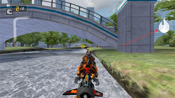 4、遇到直行赛道或是要超车时,可以点击右上角的火焰按钮,进行加速。