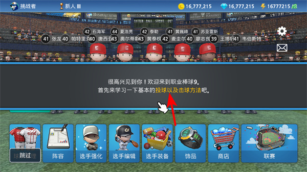 1、先学习基本的投球和击球方法,这是开展棒球游戏的基础,跟引导快速掌握核心玩法。