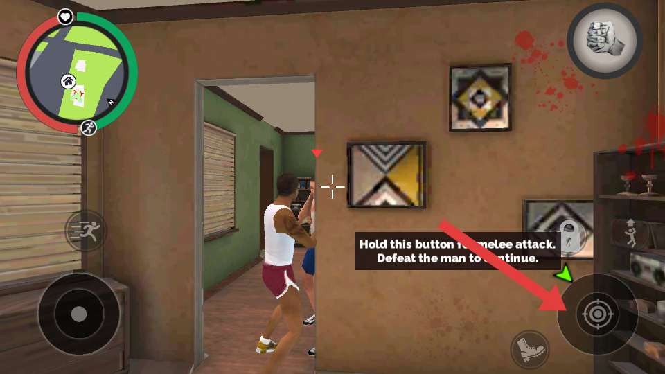 4、完成日常任务获取金币后,进入房间的时候看到对面突袭的敌人,第一时间点击右侧攻击的按钮袭击。