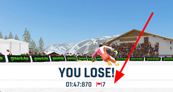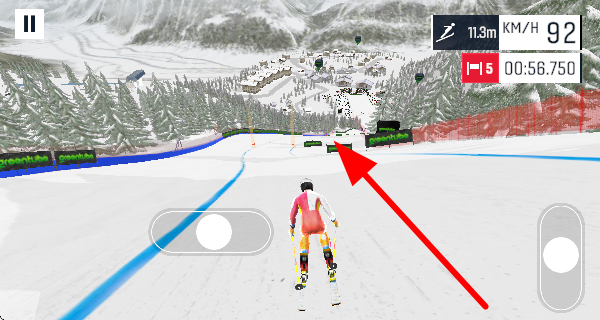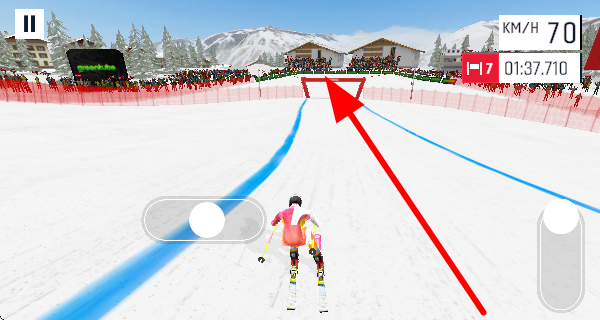 2、需要控制方向朝着赛道尽头的终点大门滑行,努力顺利通过大门,完成比赛的关键环节。