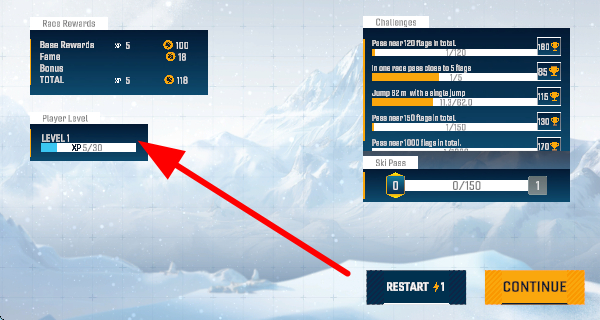 3、玩家游玩后若成功完成比赛,会记录下胜利完成的瞬间时间名次等信息,作为本次滑雪的成果。