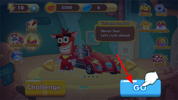 1、点进页面,在关卡准备界面点击GO按钮,即可进入赛车关卡,开启竞速挑战流程。