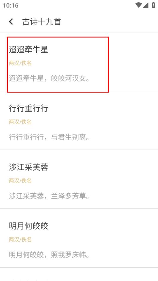 3、进入后,若想学习迢迢牵牛星,可点击该诗的条目。
