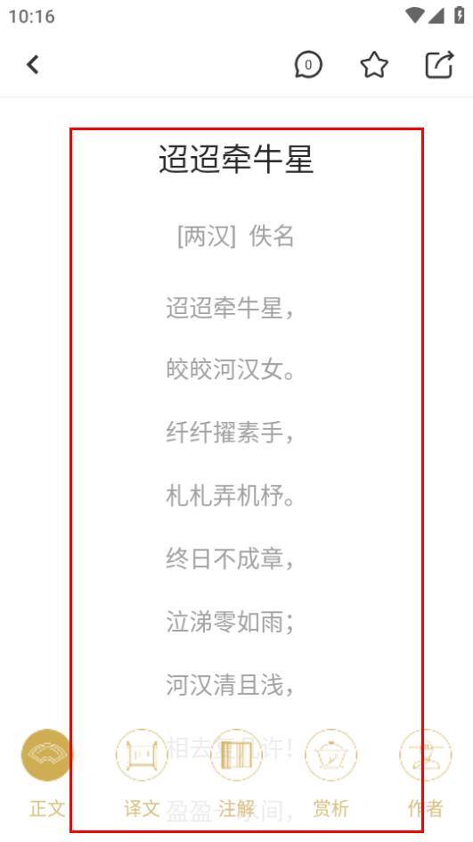 4、点击后,即可查看迢迢牵牛星的完整内容并学习。