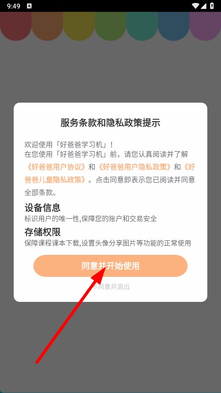 1、打开APP,在弹窗中点击同意并开始使用。