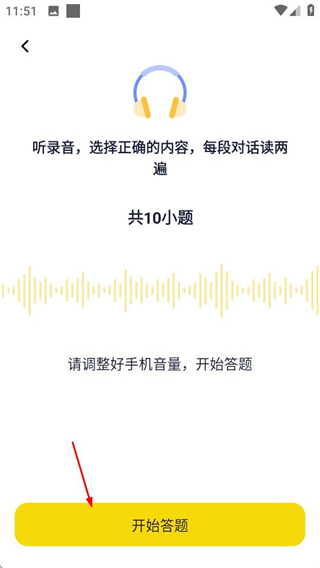 3、在准备页面,点击开始答题按钮,进入听力题目作答界面。