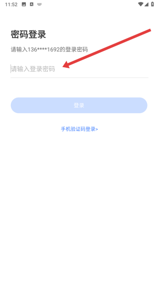 4、在切换为密码登录后,可点击输入框填写登录密码后,完成登录操作。