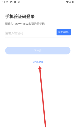 3、在跳转到验证码登录页面中,可以点击下方密码登录按钮,切换登录方式。