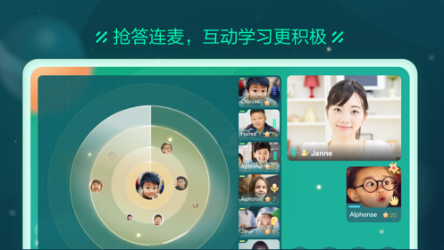 1、陪伴激励式强互动教室,全员视频互动,伙伴协助完成任务,比学赶超获得奖励;