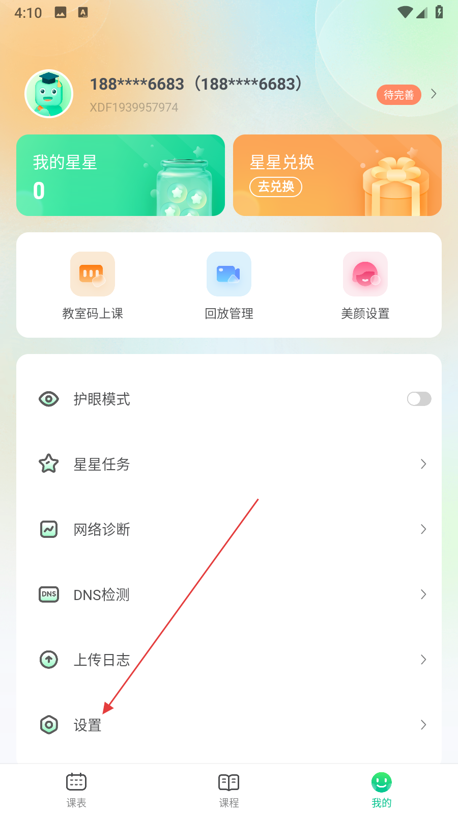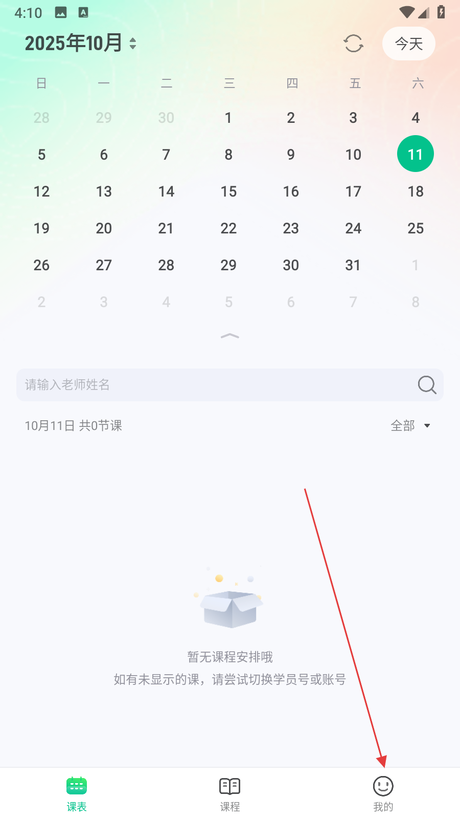 1、打开新东方云教室APP,点击底部导航栏我的,进入个人中心页面。