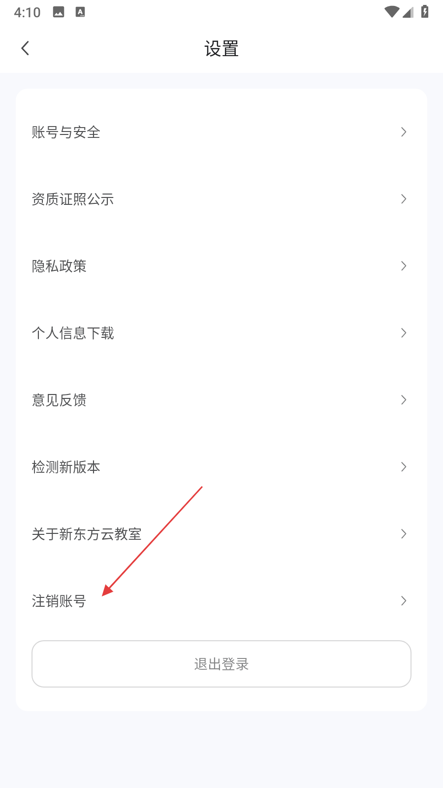 3、在设置界面中,点击注销账号选项,进入注销账号页面。