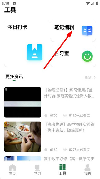 2、在工具页面,点击笔记编辑,进入我的笔记页面。