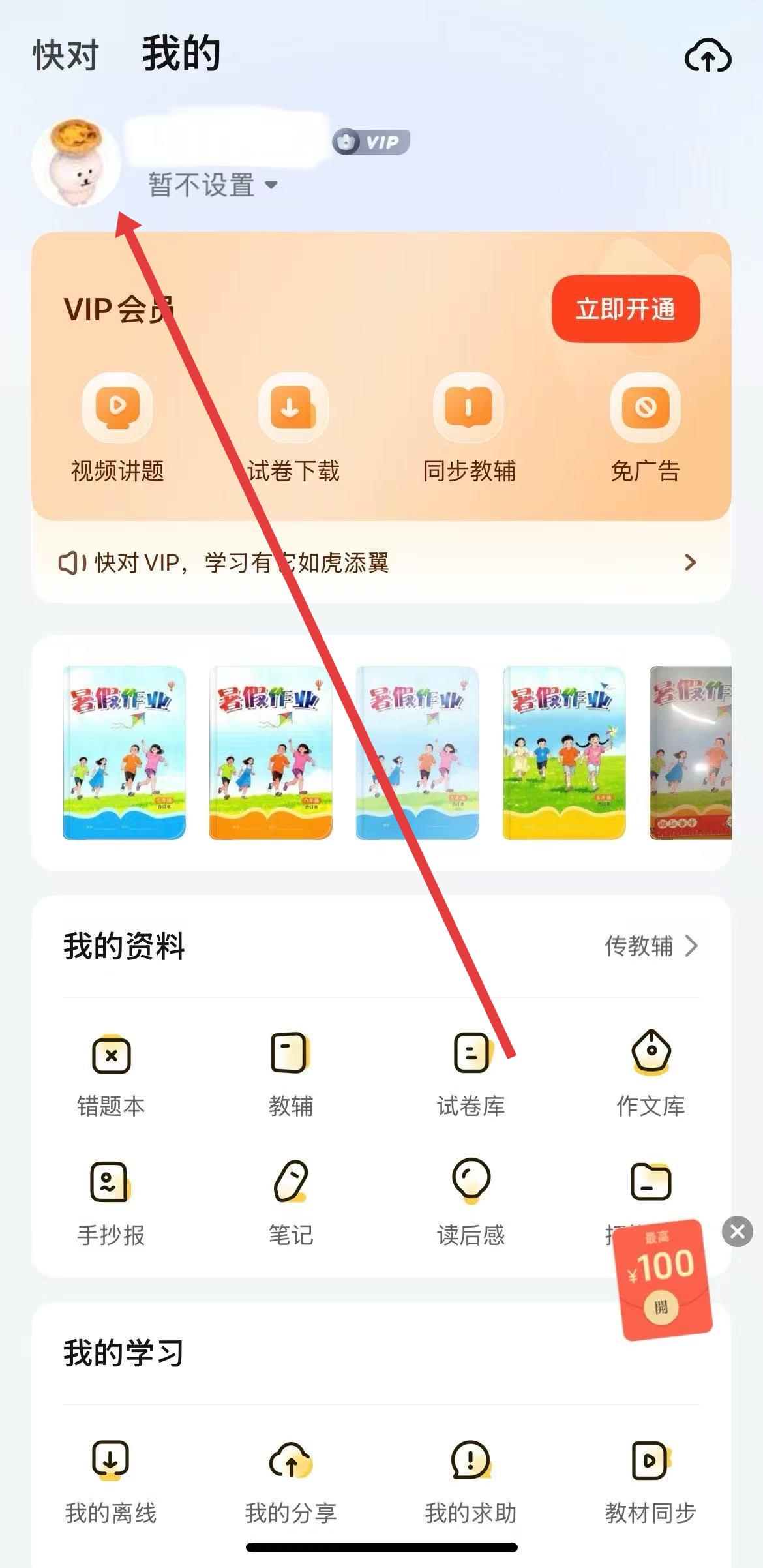 1、打开快对作业APP,点击进入我的页面,找到顶端我的头像下方暂不设置,点击进入设置年级。
