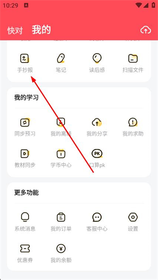 2、在个人中心页面找到手抄报选项并点击,进入手抄报专区。