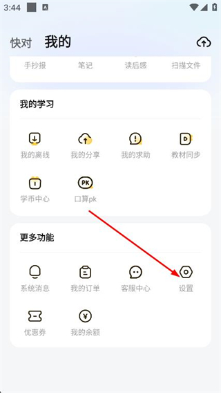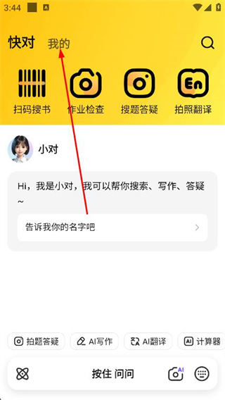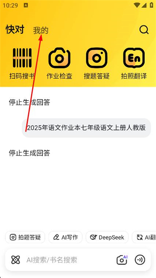 1、打开快对作业,点击顶部的我的选项,进入个人中心页面。