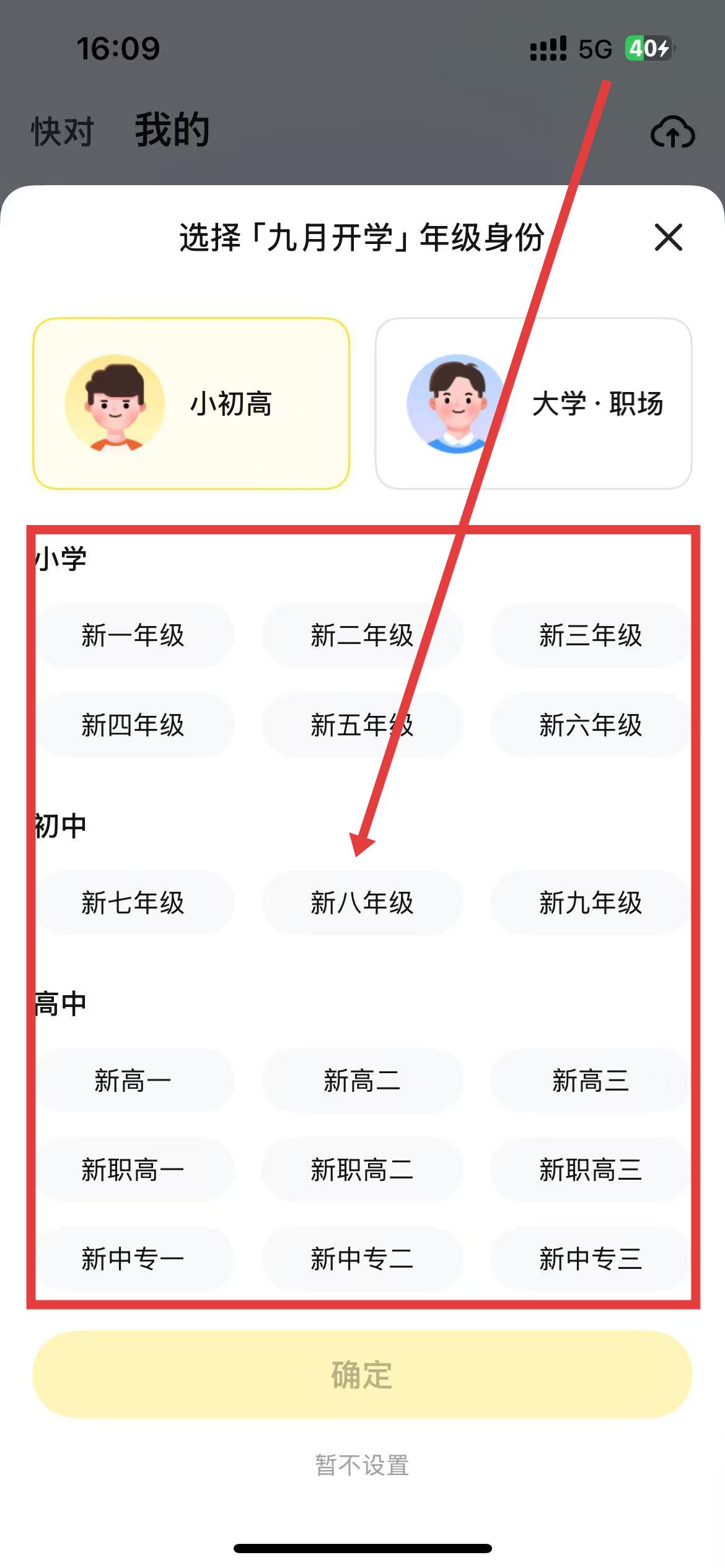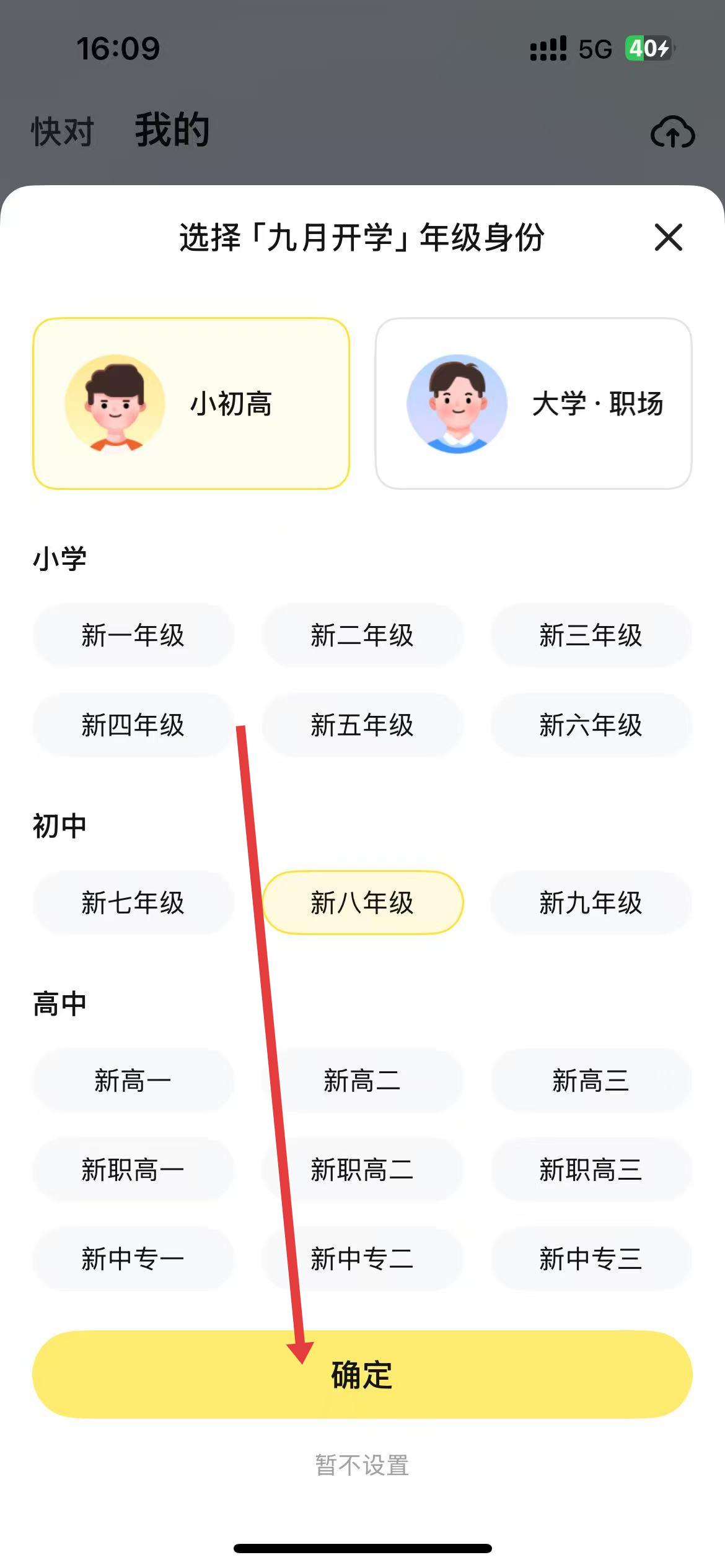 3、选择好年级并确认无误之后,点击底部黄色的确定按键,完成年级更改操作。