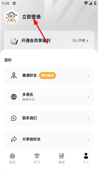 2、在个人页面,点击立即登录按钮,进入登录页面。
