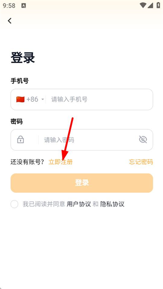 3、在登录页面,点击立即注册选项,进入注册页面。