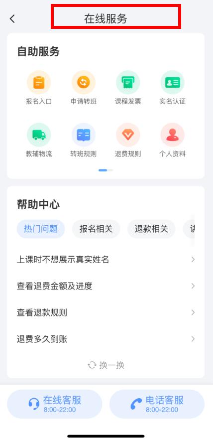 3、进入在线服务页面后,页面底部设有在线客服和电话客服,可按需选择相应方式联系客服。