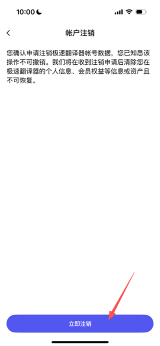 4、在账户注销页面,点击立即注销按钮,可完成账号注销。