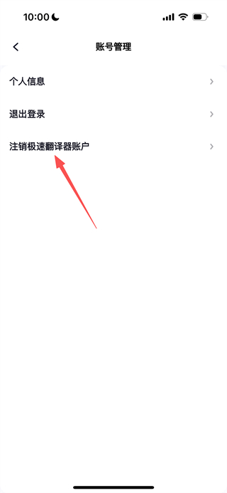 3、在账号管理页面,点击注销极速翻译器账户选项,进入账户注销页面。