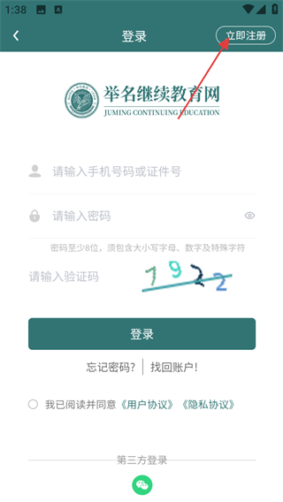 3、在登录页面,点击立即注册选项,进入注册页面。