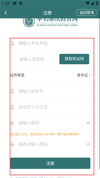 4、在注册页面,填写信息后,点击注册完成账号注册。