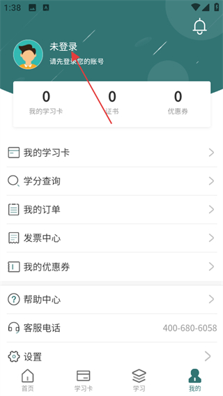 1、在举名教育的首页,点击底部的我的选项,进入个人中心页面。