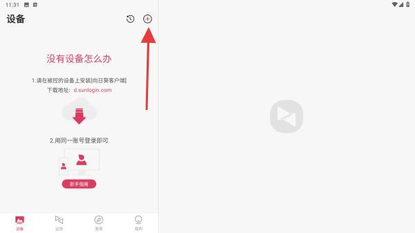 1、启动向日葵远程控制APP,进入到首页内,点击+号的按钮。