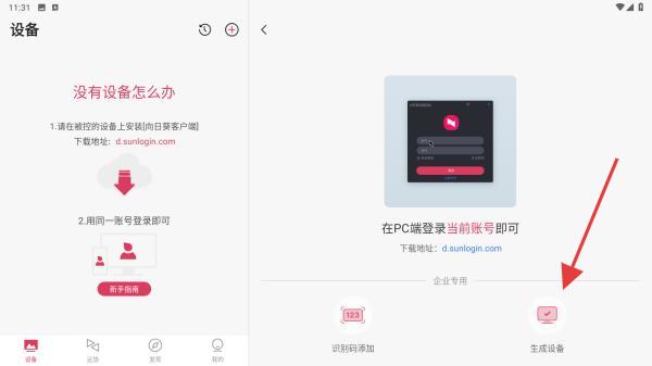 使用手机控制手机功能时,记得被控手机同时下载“向日葵客户端”,并登录同一账号即可使用;