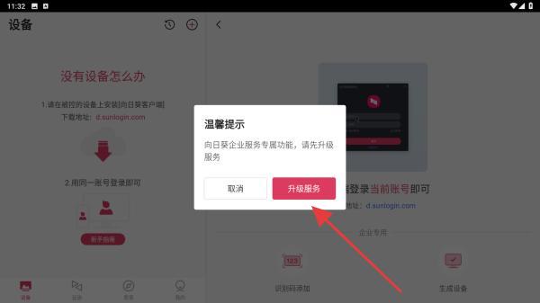 4、点击后弹出温馨提示,了解并点击升级服务即可。