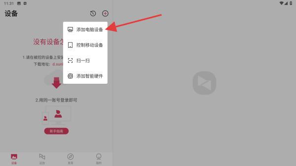 2、在弹出的菜单栏中,点击添加电脑设备的按钮。