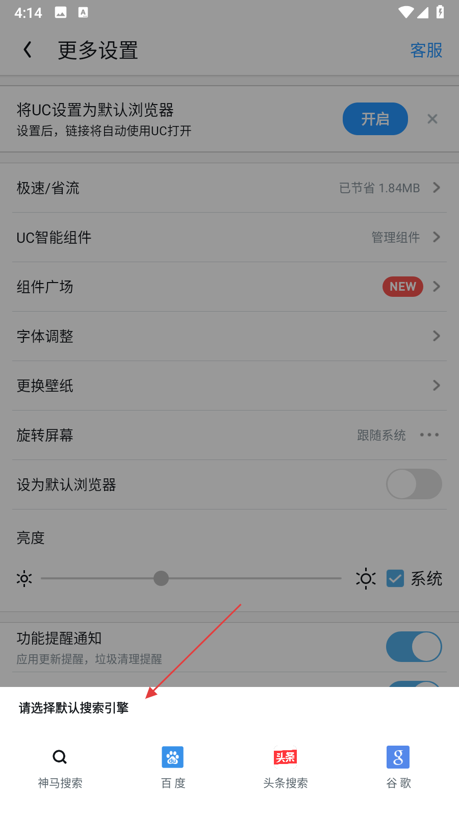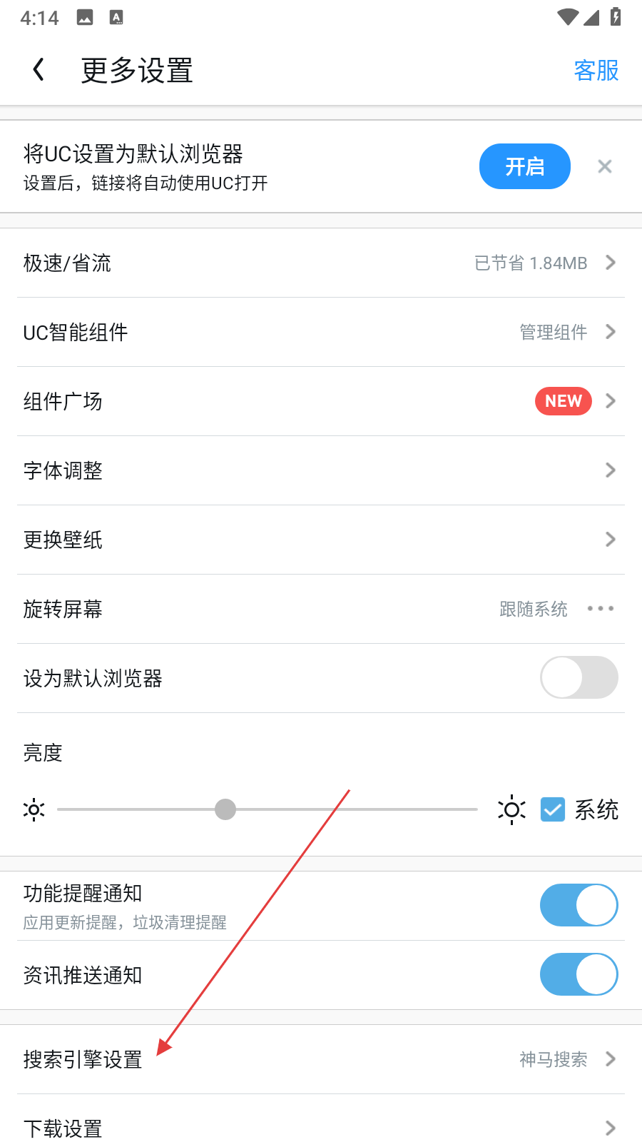 uc浏览器极速版怎么更改默认搜索引擎设置