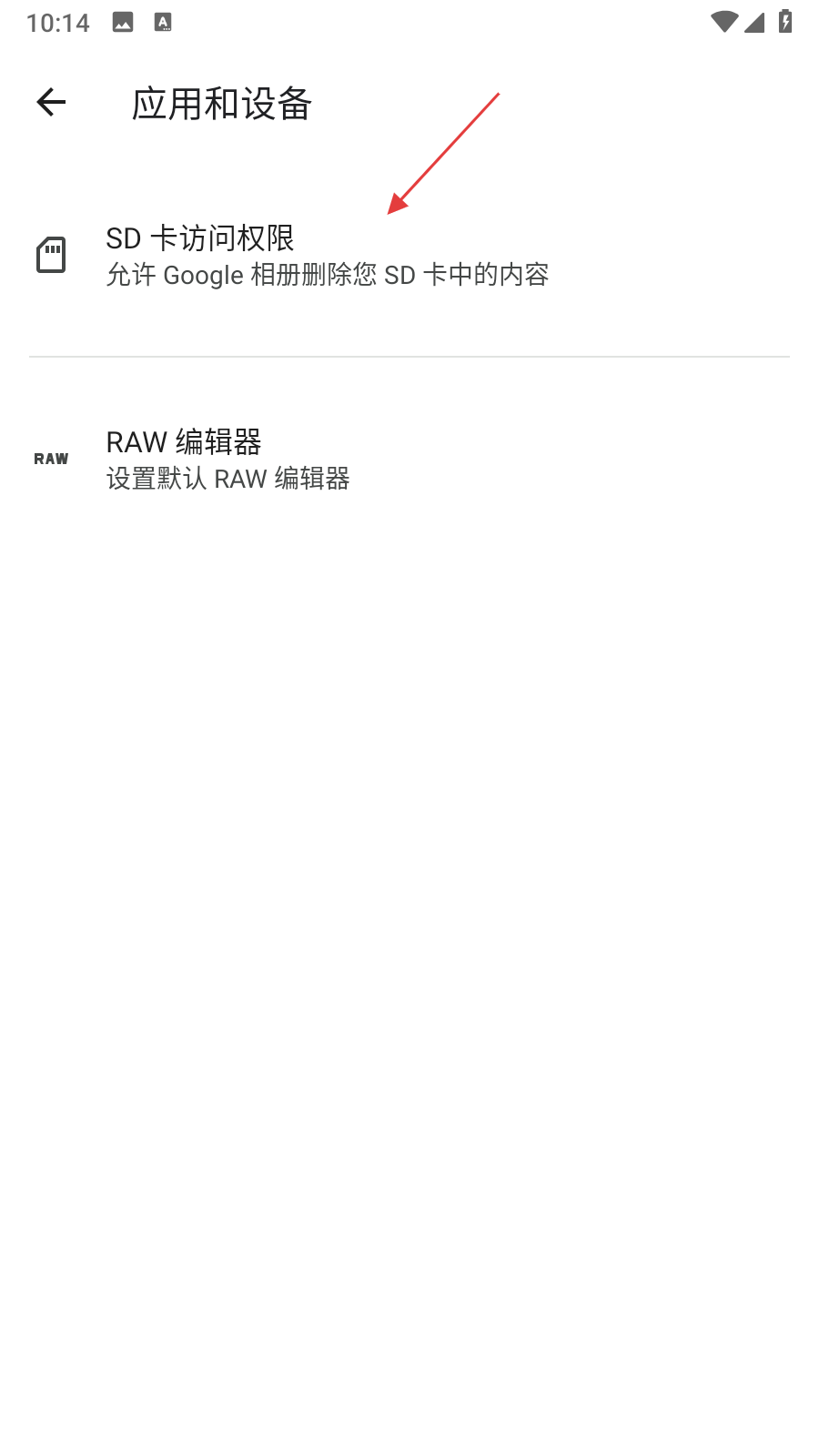 4、在应用和设备设置界面中,找到并点击SD卡访问权限选项,即可对谷歌相册的SD卡权限进行设置。