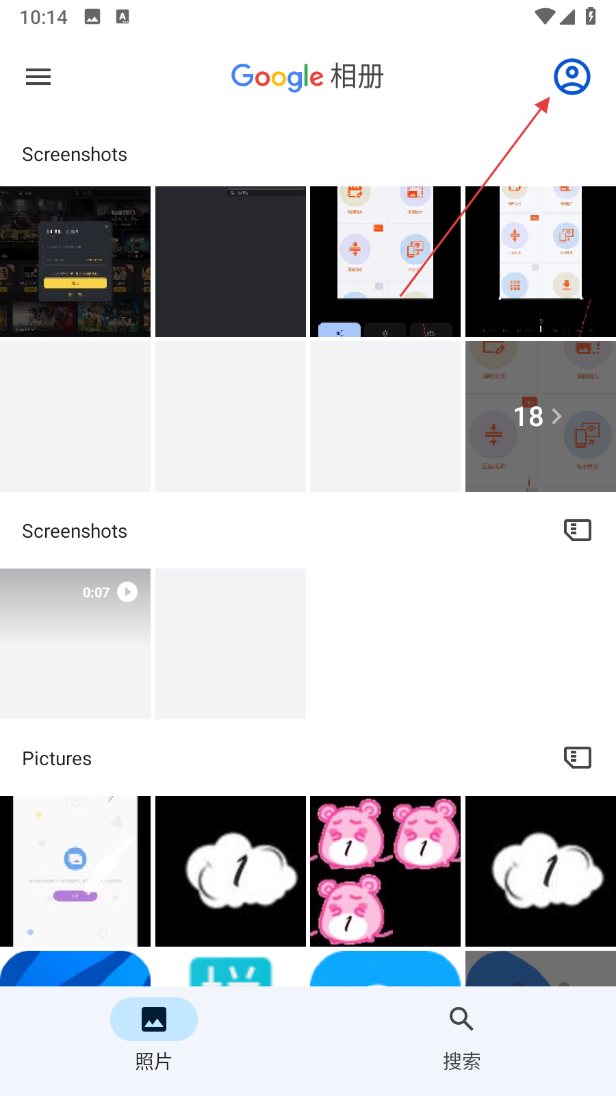 1、打开谷歌相册APP,点击界面右上角的个人账号图标,弹出包含登录,相册设置等选项的菜单。