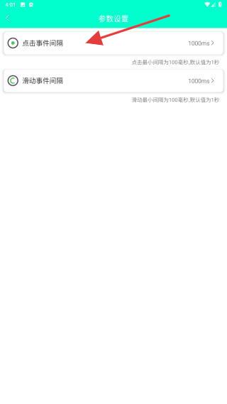1、打开智能连点器APP,在首页内点击参数设置的功能按钮,