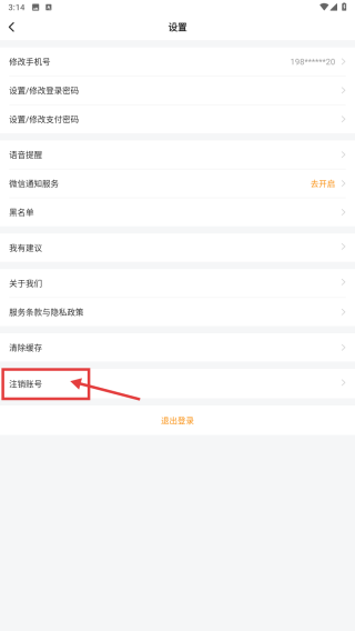 3、在设置页面,点击注销账号选项,查看注销账号说明。
