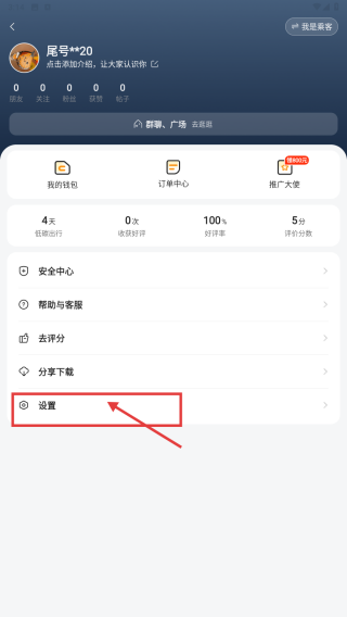 2、在个人中心,点击设置选项,进入设置界面。