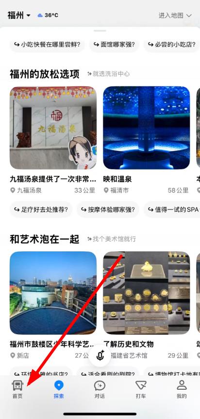 1、打开高德地图APP点击底部导航栏首页选项,进入首页界面。