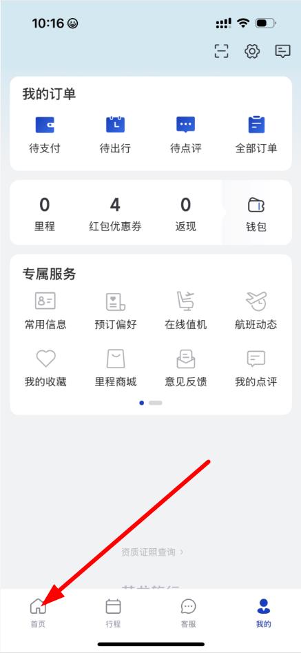 1、打开艺龙旅行app,点击底部首页图标进入首页。